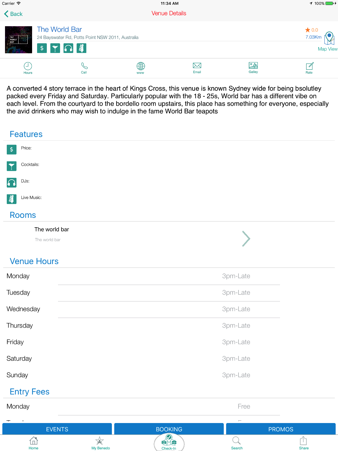 Venue hours Venues has opening hours you can check in the APP if your favorite venue is open for fun. Ipad HELP Ipad Step 1 In Venue Details you can tap on clock icon to check opens hours or you can also tap on rigth arrow for more details Step 2 Here you can see the open hours for the venue