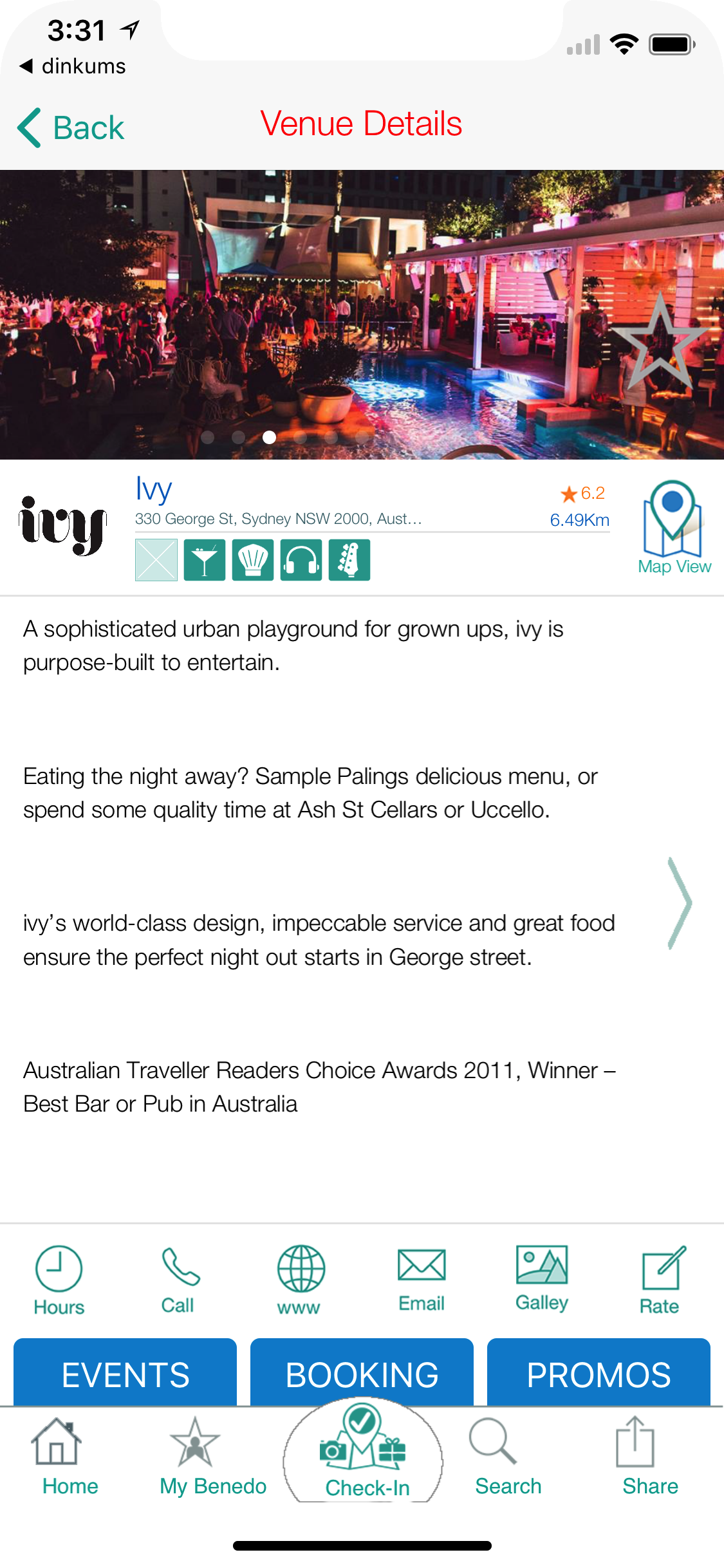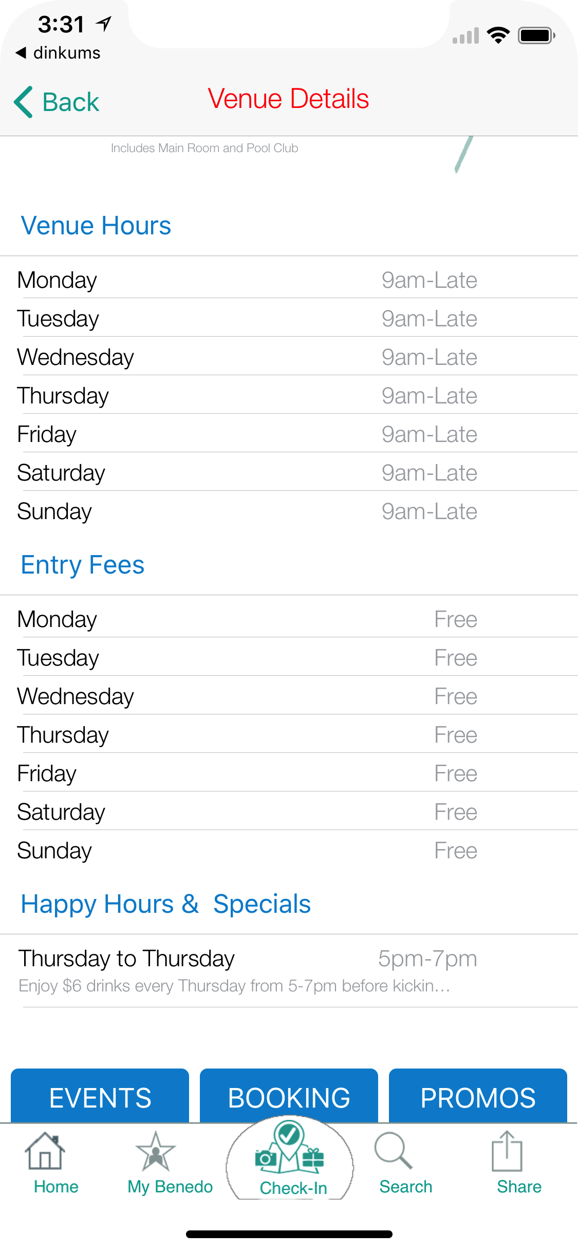 Happy hours Venues can give you special offers on a range of time, these are also called "Happy Hours" Iphone HELP Iphone Step 1 On Venue Details tap on rigth arrow to display more details Step 2 If you find Happy Hours you will have special offers for limit space of time, so hurry up and enjoy Step 3 Scroll down and search for Happy Hours, no finding there meaning that venue has not Happy Hours yet maybe later they will