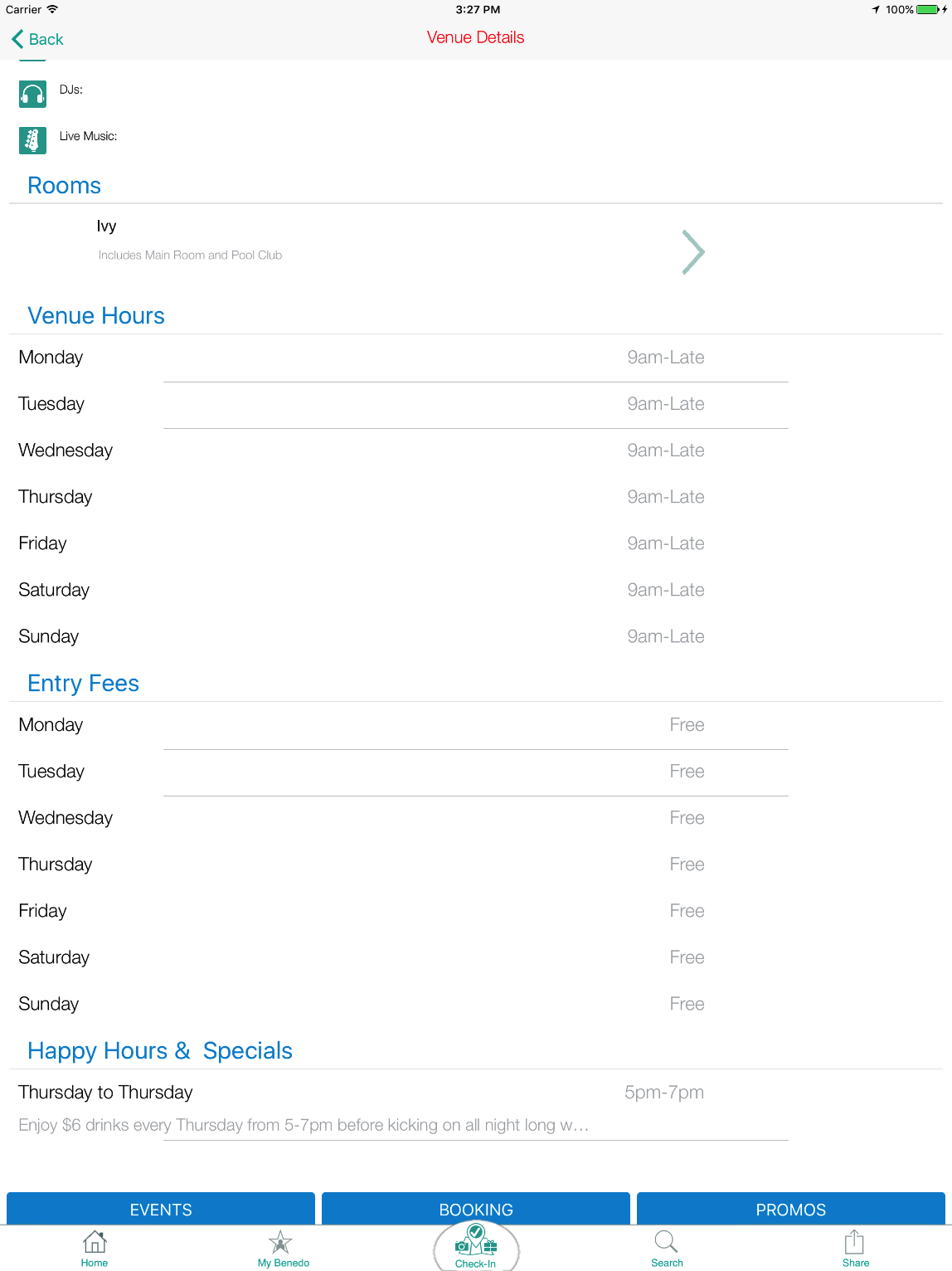Happy hours Venues can give you special offers on a range of time, these are also called "Happy Hours" Iphone HELP Ipad HELP