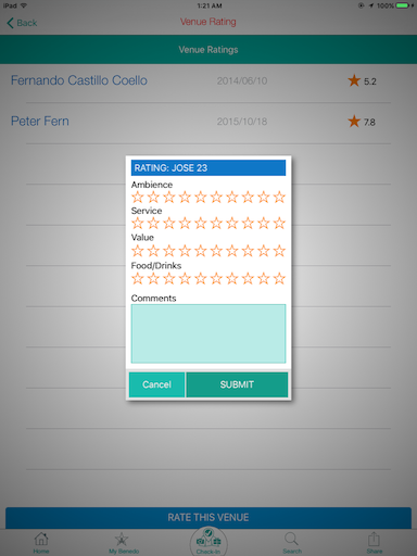 Rate the venue You can rate venues you have visited so costumer and venue owners can have feedback and take best choices.